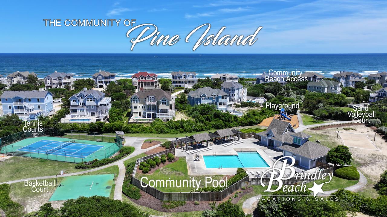 Stretching along 3 1/2 miles of beach and expansive dunes just north of Duck, Pine Island borders the Pine Island Audubon Wildlife Refuge. It affords guests the unique opportunity to experience endless views of both the Currituck Sound and the Atlantic Ocean and to enjoy wide, un-crowded Corolla beaches. Pine Island is a highly sought-after community just a short drive from extensive shopping, dining, and recreational offerings including lighthouses, water sports, historical sites, wild horse tours, and other local attractions.